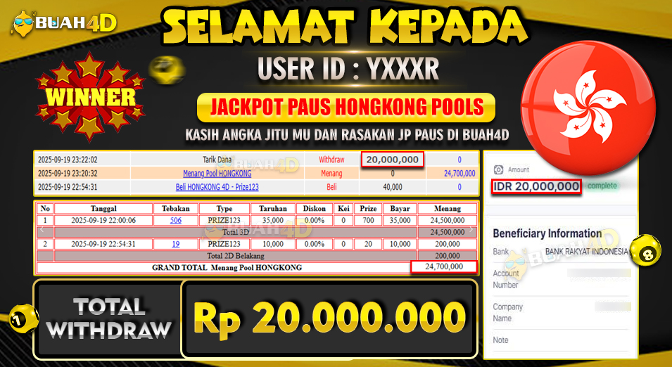 JP PAUS DI HONGKONG 20juta – BUAH4D