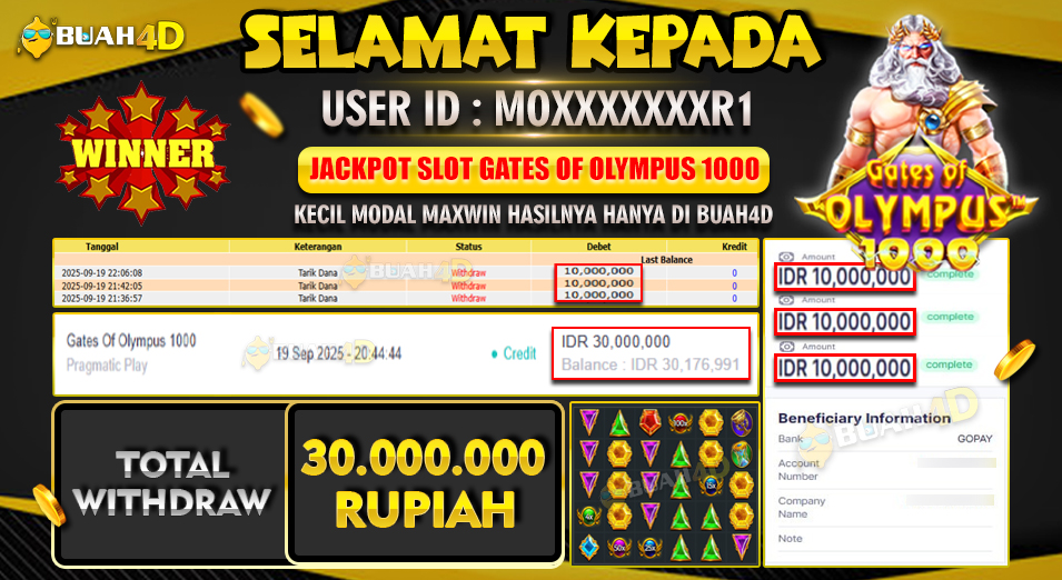 Selamat kepada player MOXXXXXXXR1 menang Rp 30,000,000