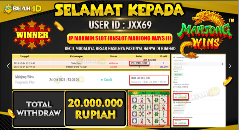 Selamat kepada player JXX69 menang Rp 20,290,000
