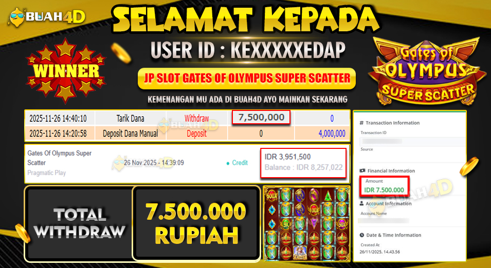 Selamat kepada player KEXXXXXEDAP menang Rp 7.500.0000