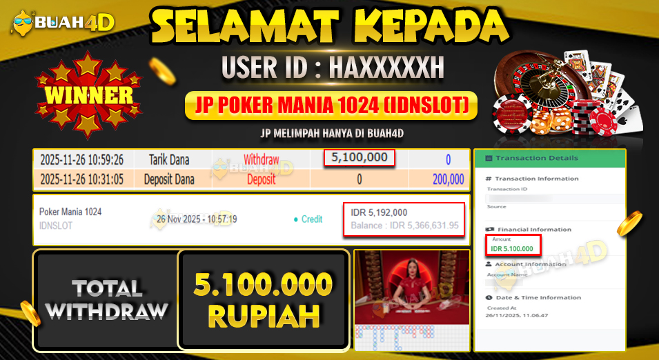 Selamat kepada player HAXXXXXH menang Rp 5,100,000