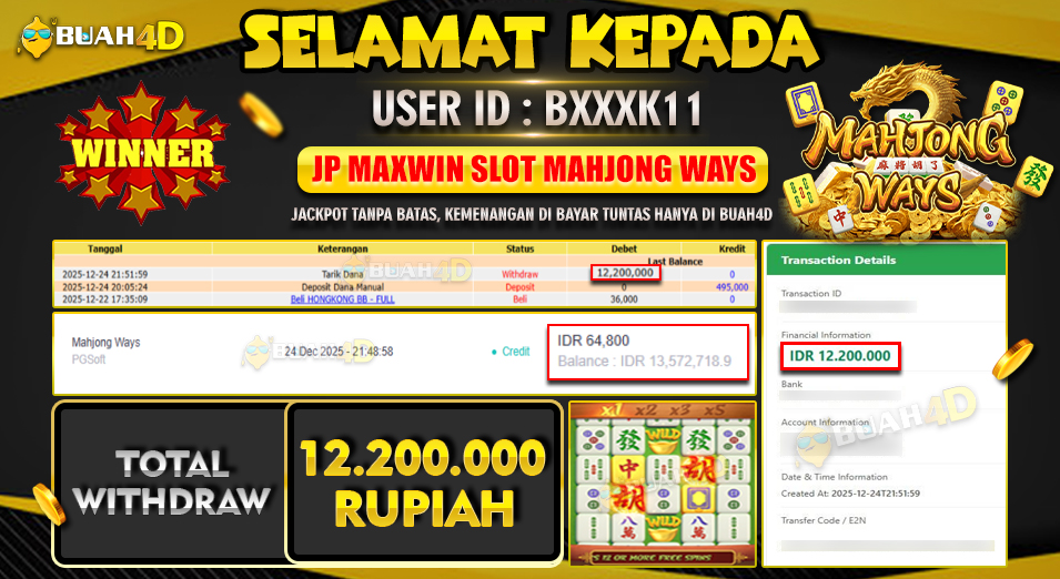 Selamat kepada player BXXXK11 menang Rp 12,200,000