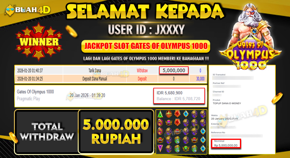 Selamat kepada player JXXXY menang Rp .5,000,000