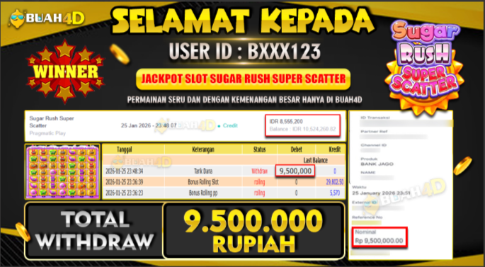 Selamat kepada player bXXX123 menang  Rp .9.500.000