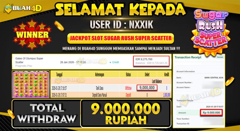 Selamat kepada player NXXIK menang Rp . 9,000,000