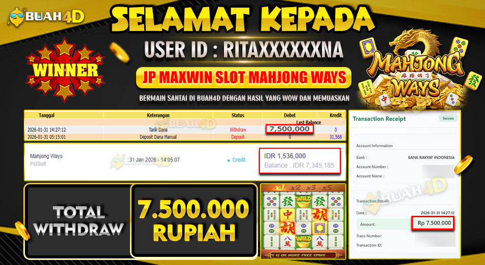 Selamat kepada player NXXIK menang Rp . 7,500,000