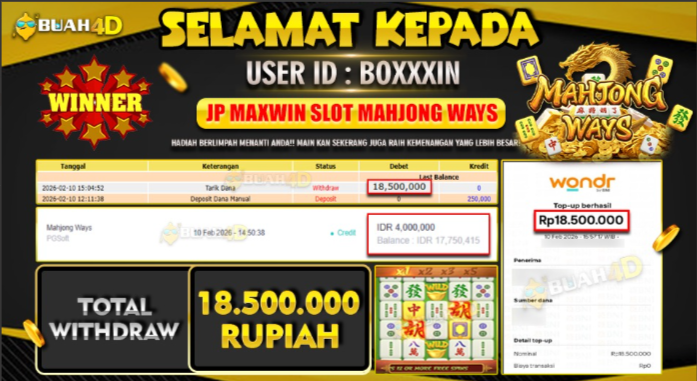 Selamat kepada player BOXXXIN menang Rp . 18.500.000