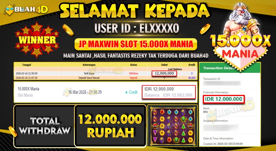 Selamat kepada player ELXXXXO menang Rp 12.000.000