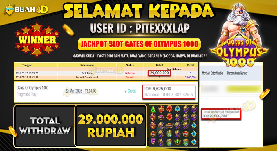 Selamat kepada player PITEXXXLAP menang Rp 29,000,000